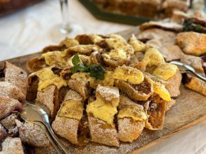 Zajedno s vama kreiramo jelovnik prema vašim željama i tipu događaja, a u ponudi nudimo više od 100 različitih jela: hladni buffet, riblji i svečani meni, tematske kombinacije, tradicionalne slatke i slane zalogaje, finger food opcije, zimski kontinentalni meni i još mnogo toga.